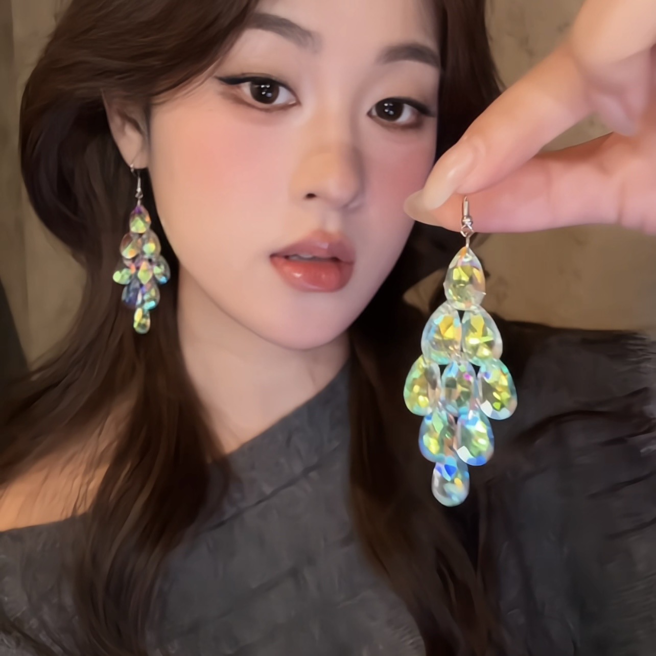 輕奢夢幻藍水晶耳環 晚宴千金氣質款