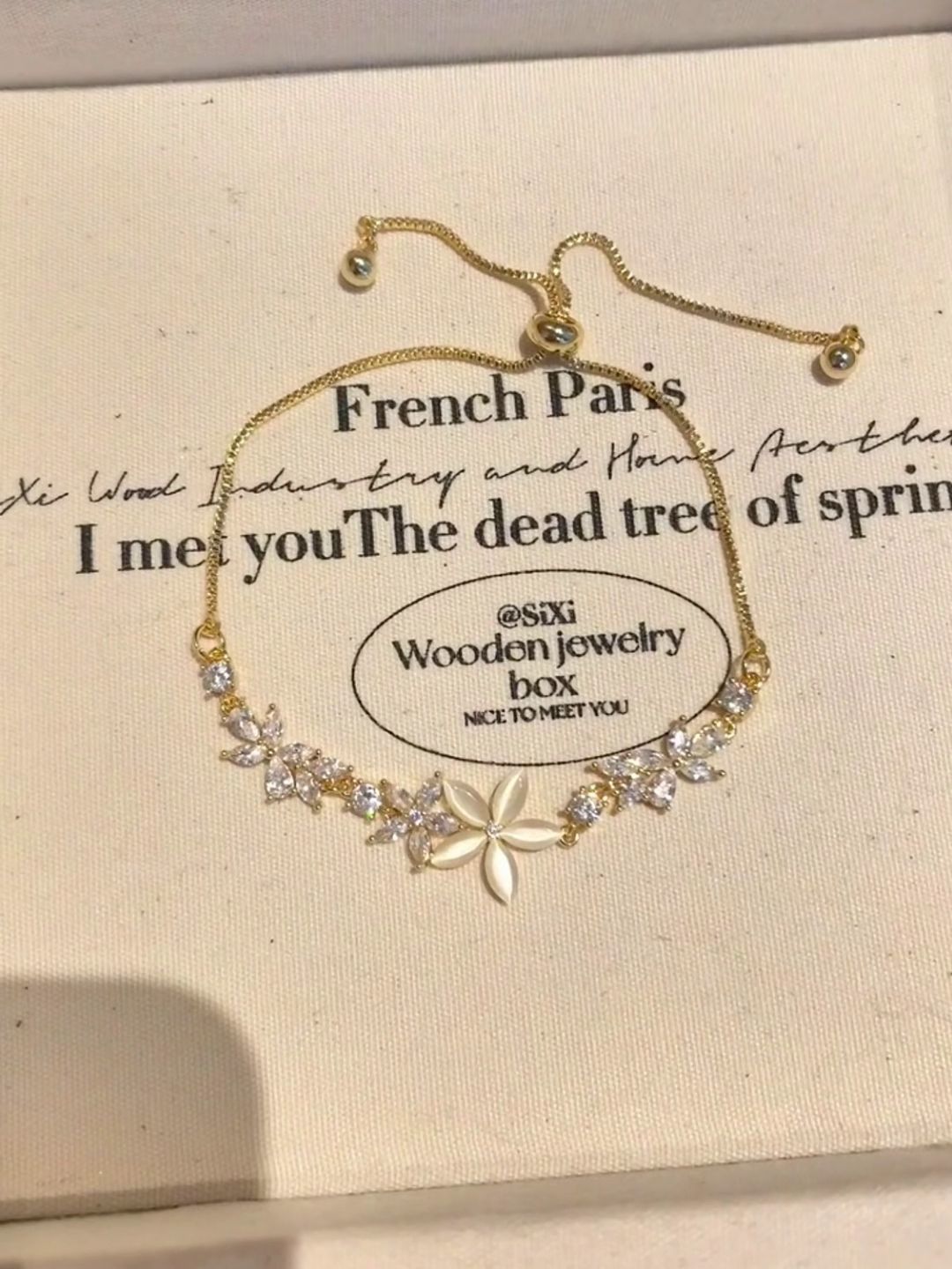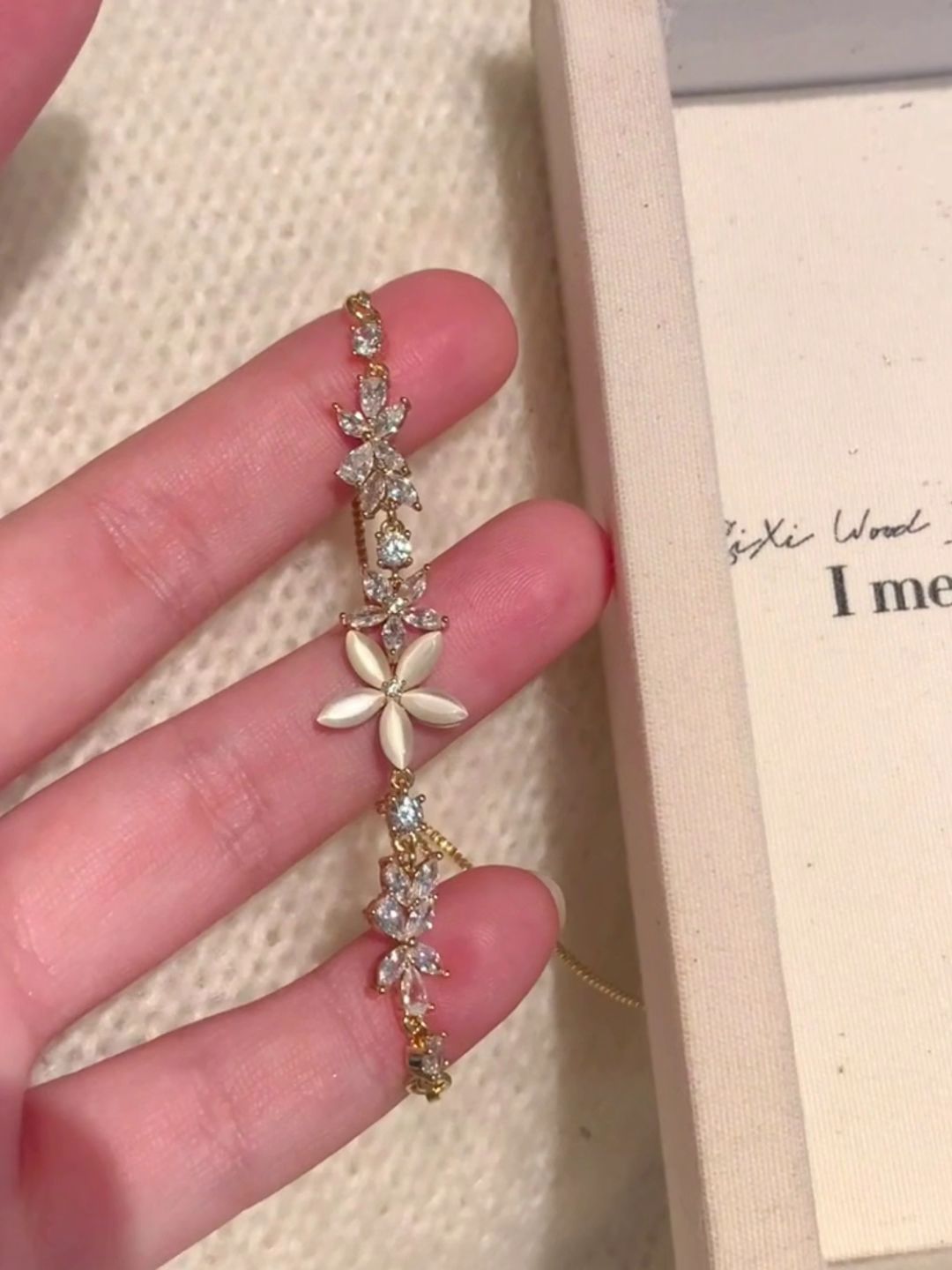春日梨花抽拉腕鍊|超閃锆石花朵甜美元氣款