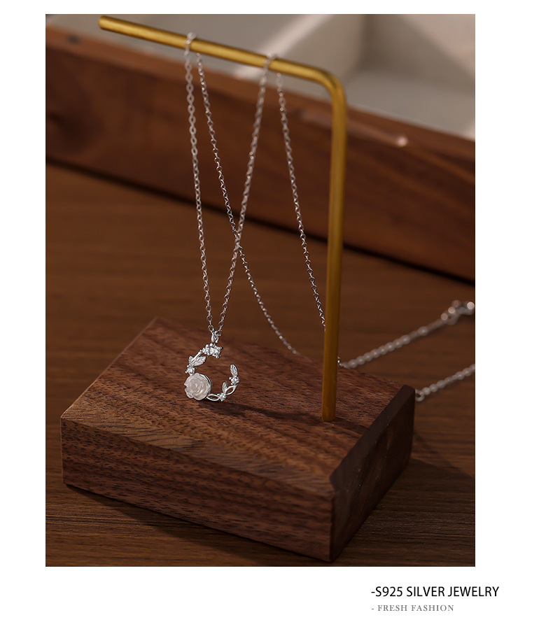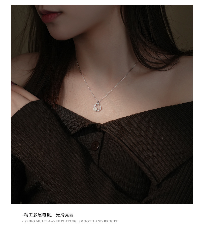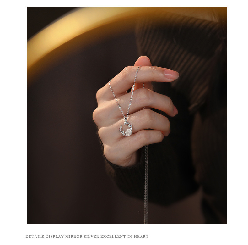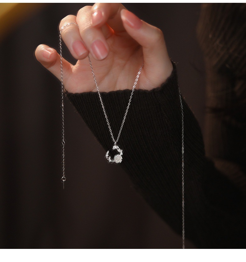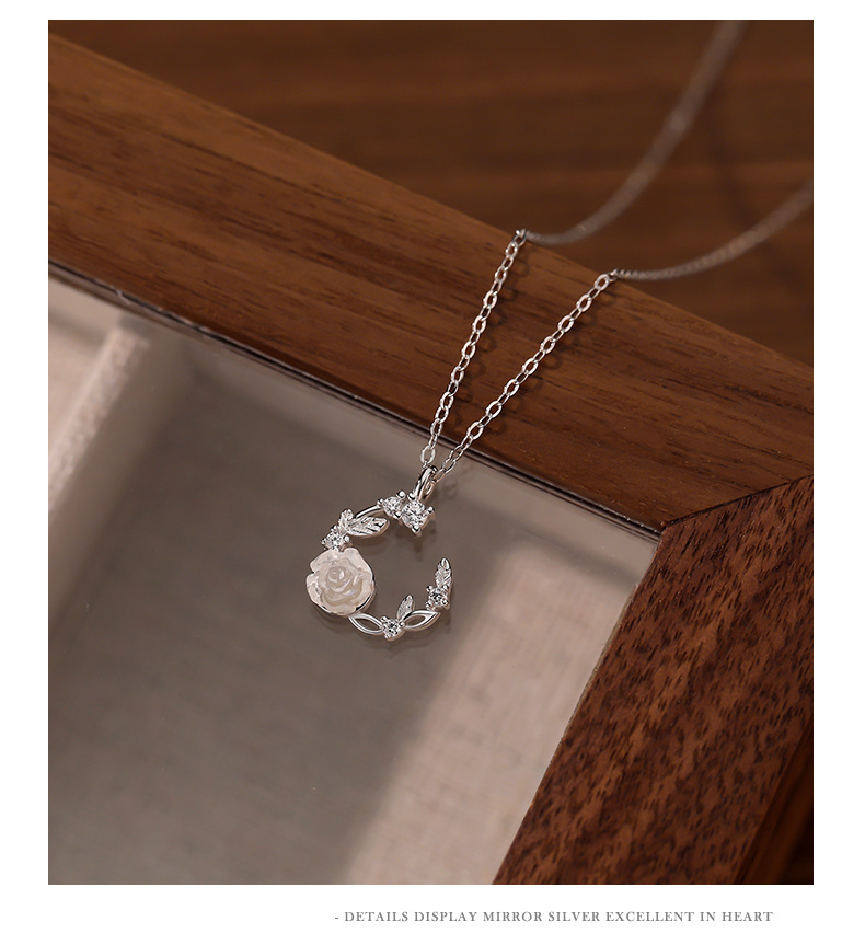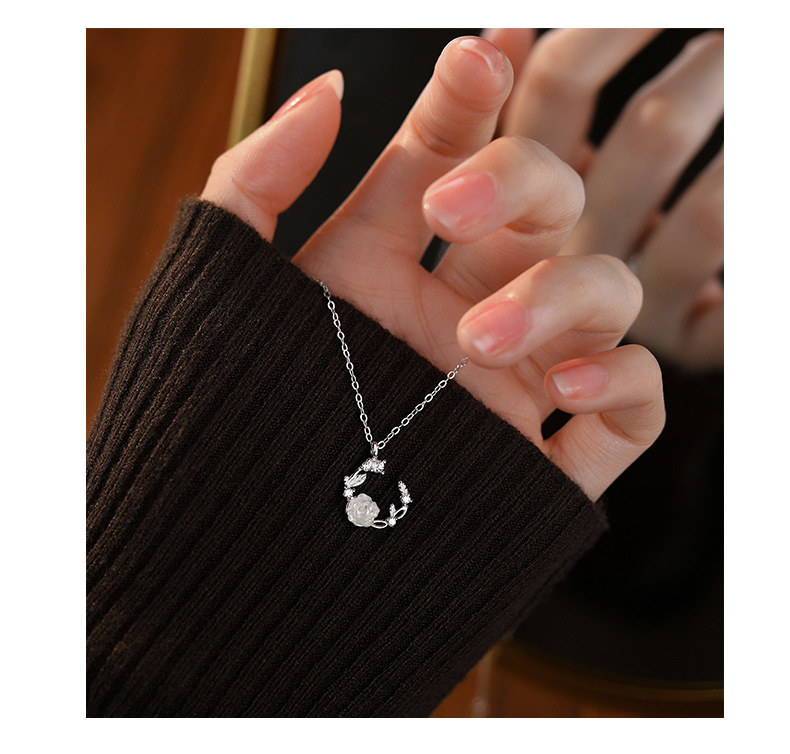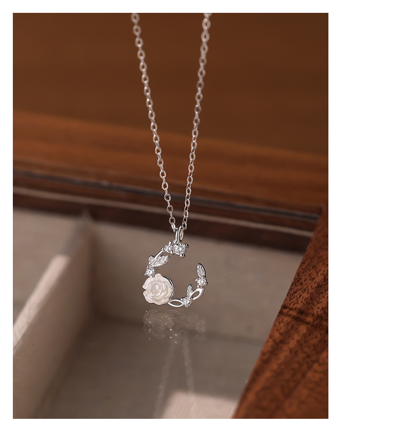 月牙山茶花項鍊|白貝母花朵墜 森系小清新 時尚簡約夏季鎖骨鏈