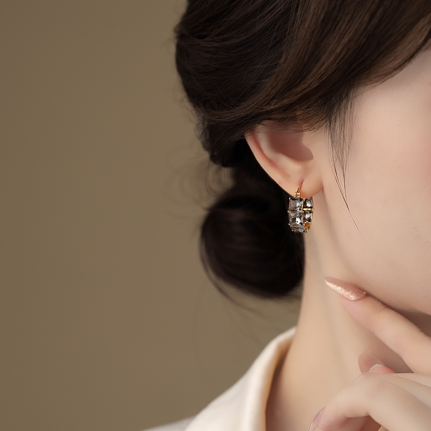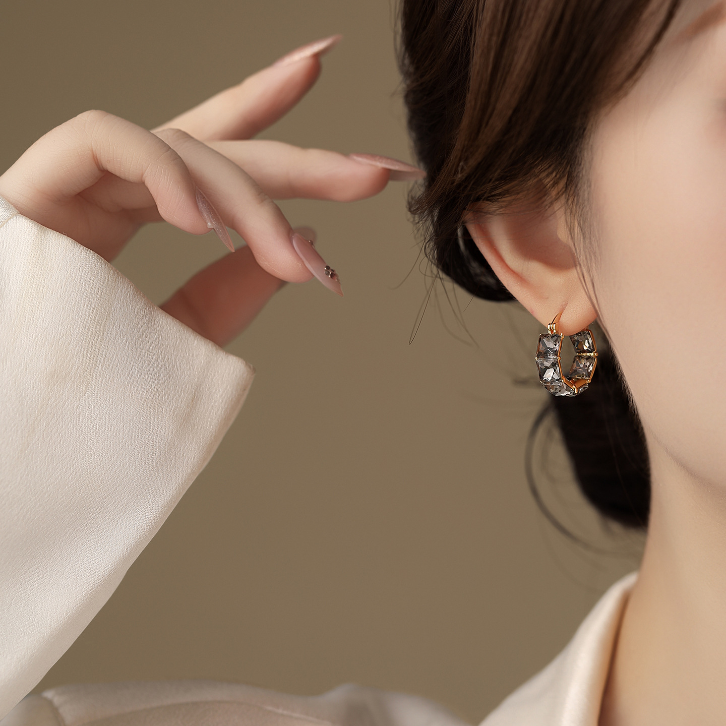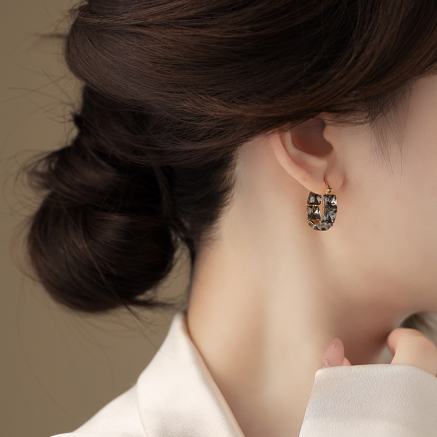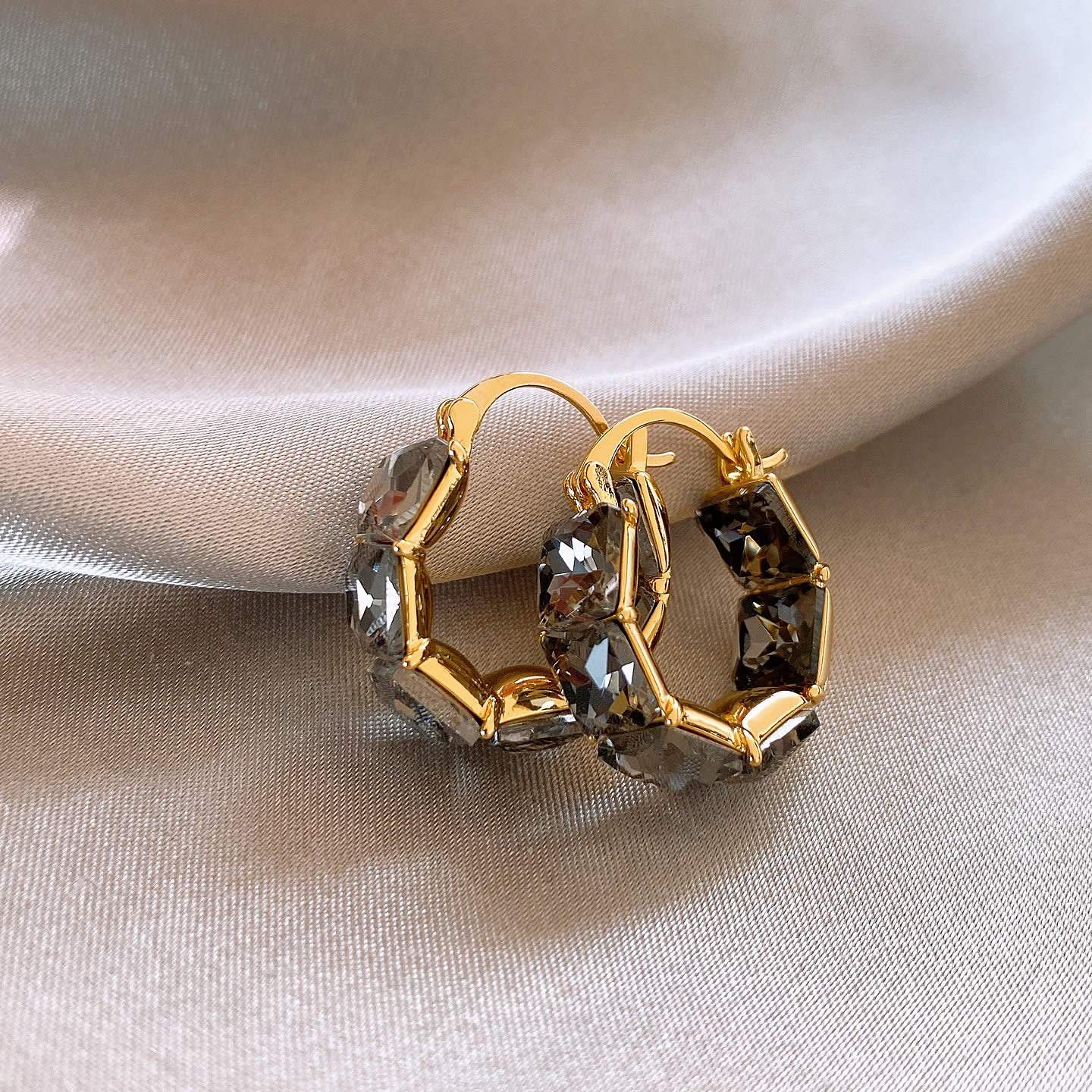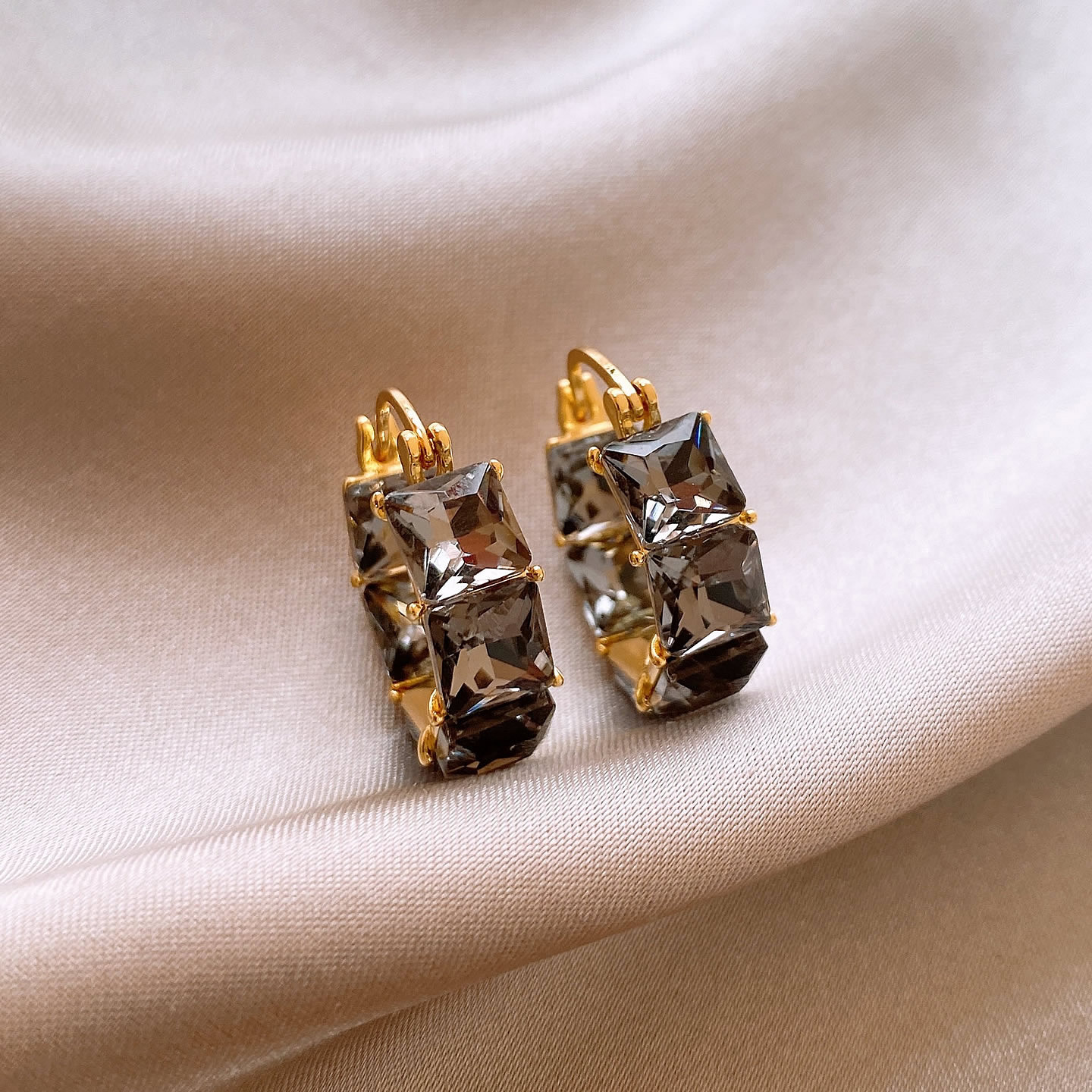 秋冬款黑色方形鋯石圈圈耳扣|小眾高級感輕奢氣質百搭耳飾