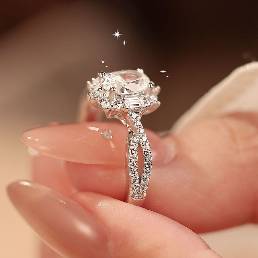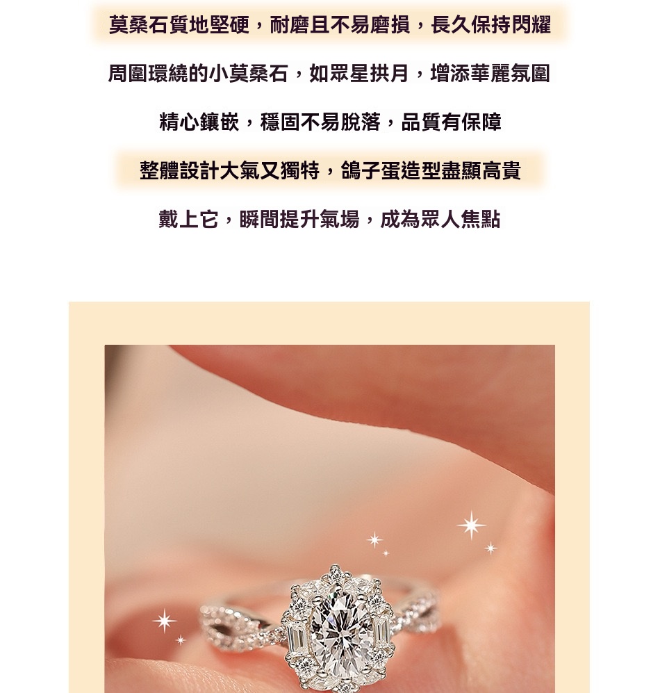 爆闪鸽子蛋莫桑钻 S925 纯银戒指|小众高级日常百搭精致開口戒