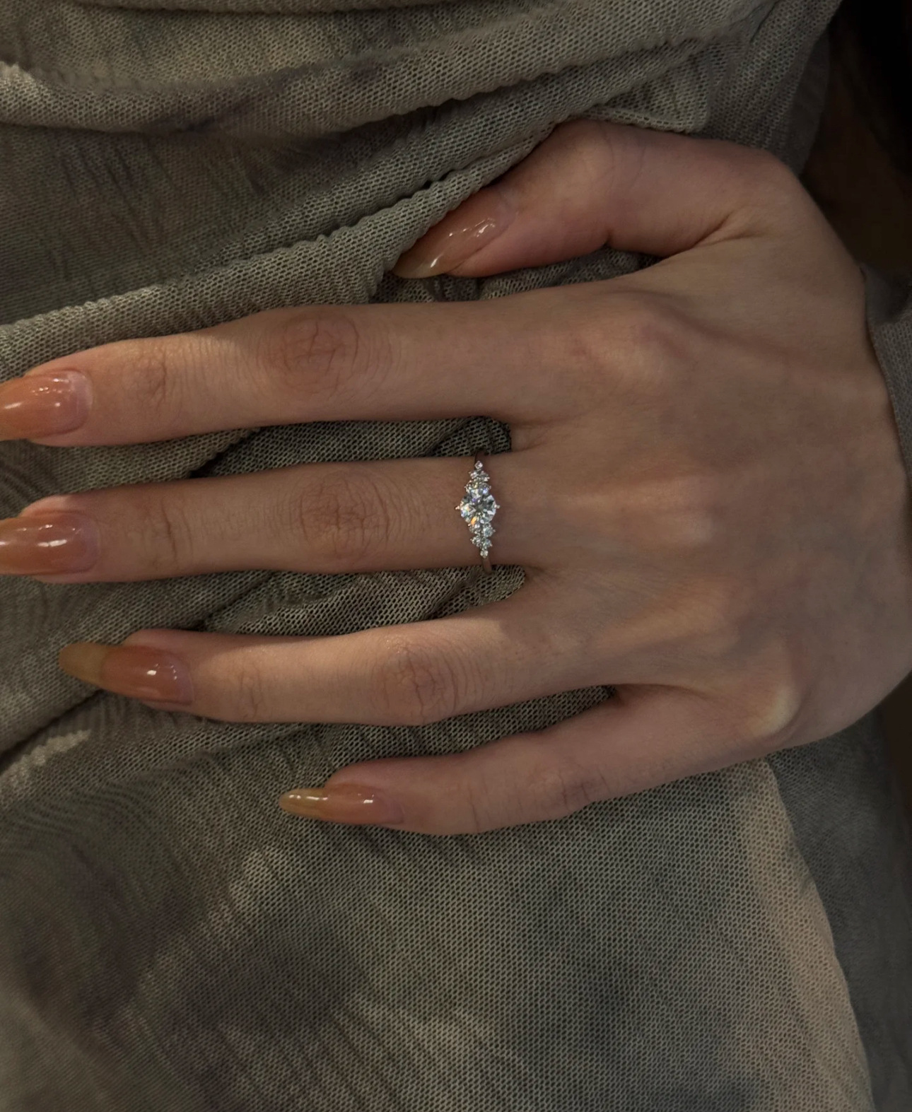 【柏林情書】s925纯银閃鑽簇擁開口指環 輕奢高級質感百搭