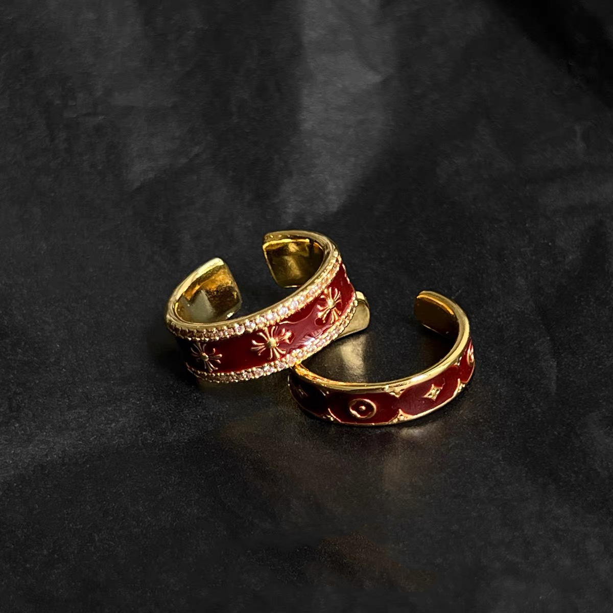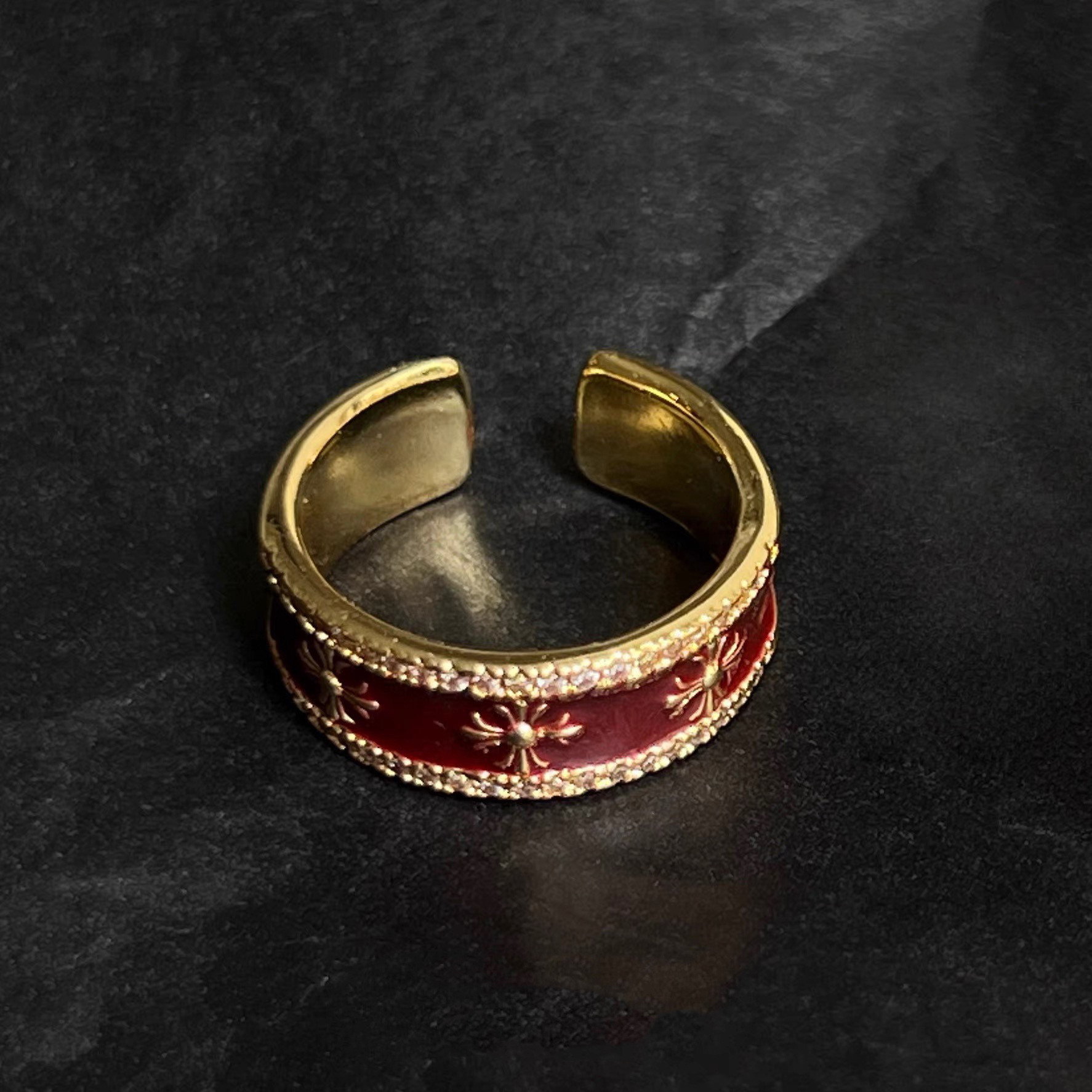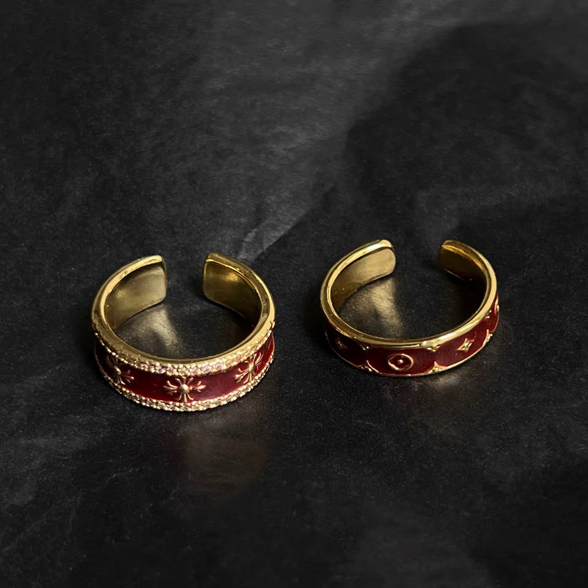 【酒紅鎏金克羅心】復古琺瑯指環