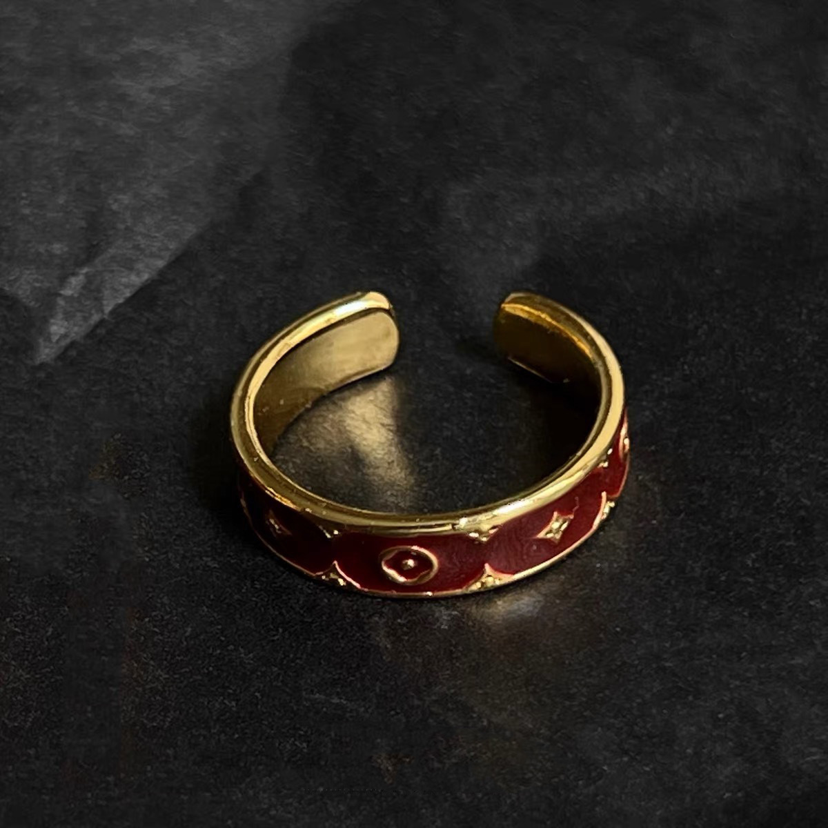 經典老花鑲飾開口指環
