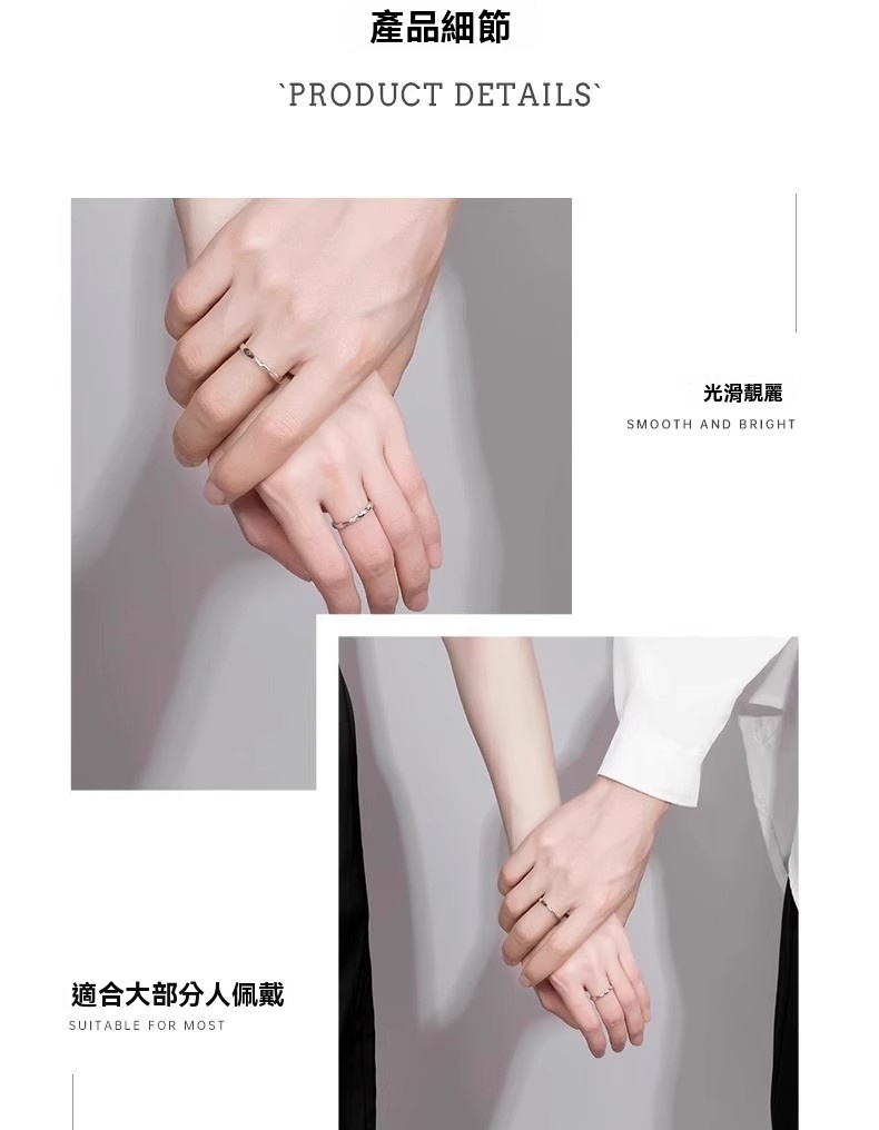 極簡高級感・純銀情侶對戒(開口戒) 獨家設計輕奢版