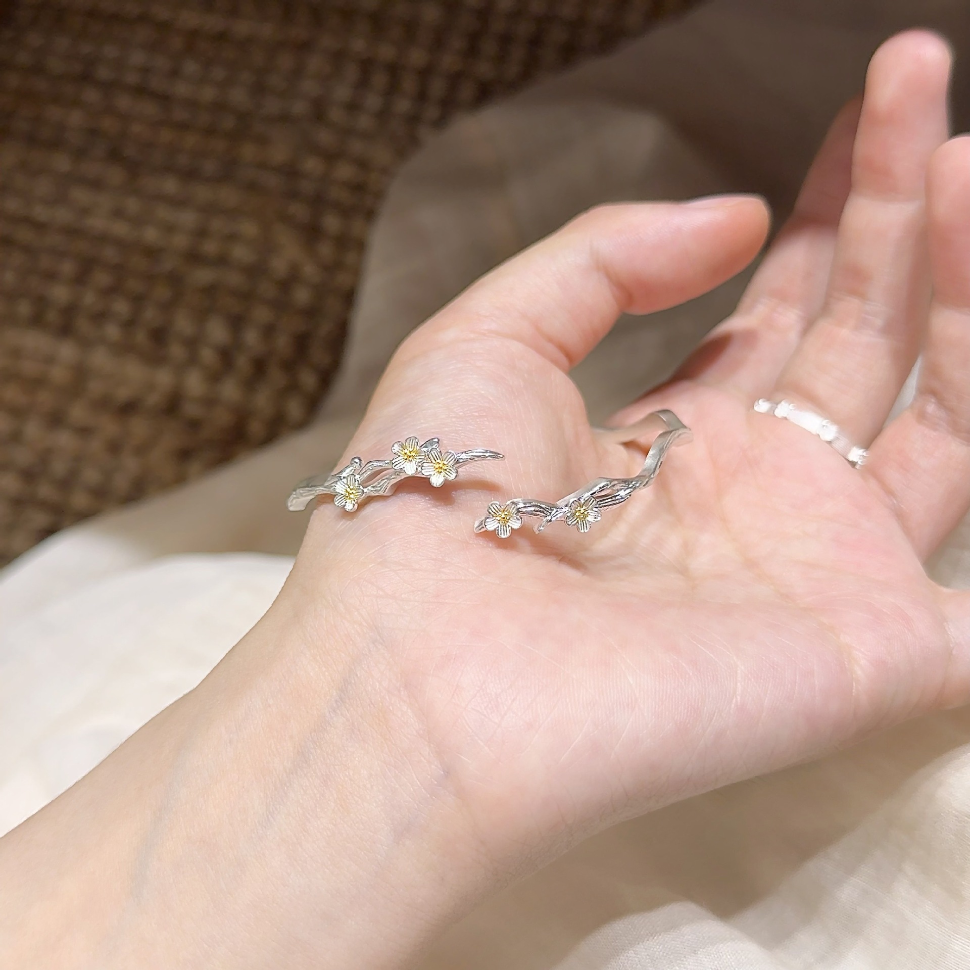 莫离茉莉花开口手环 新中式文艺轻奢款