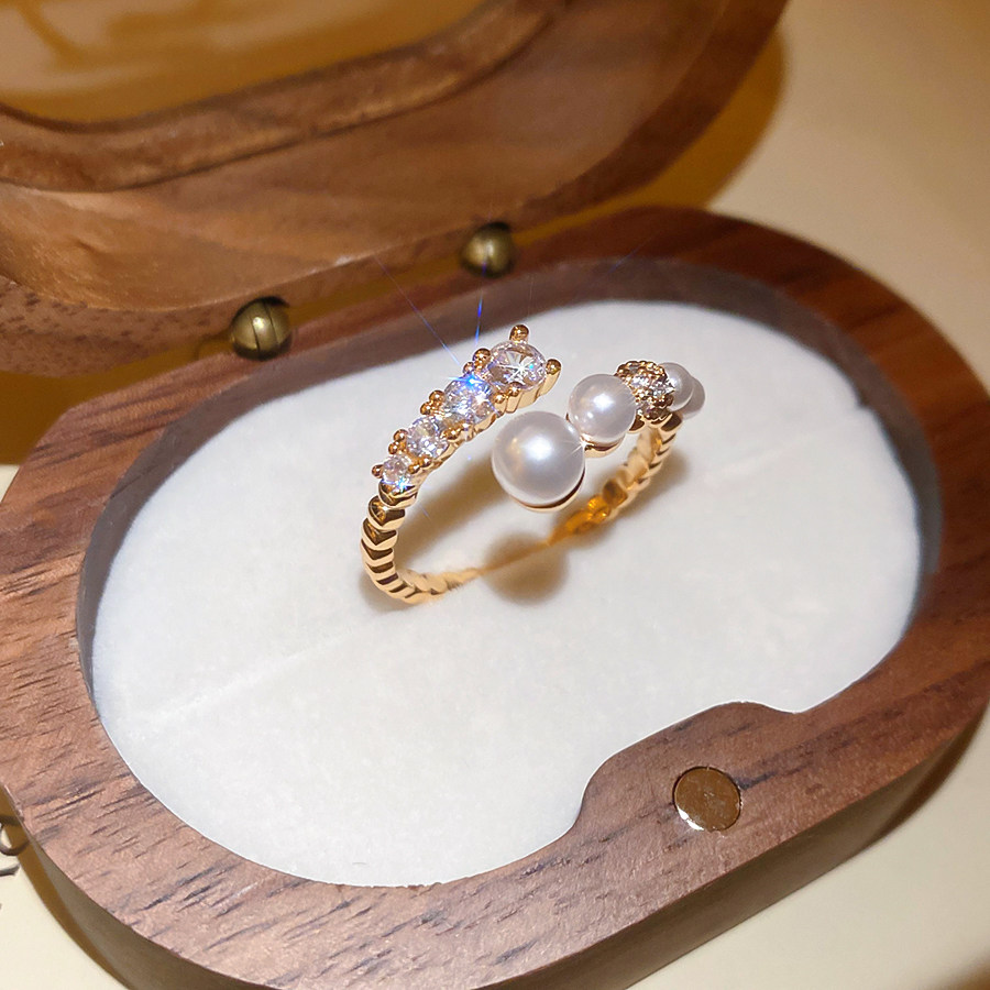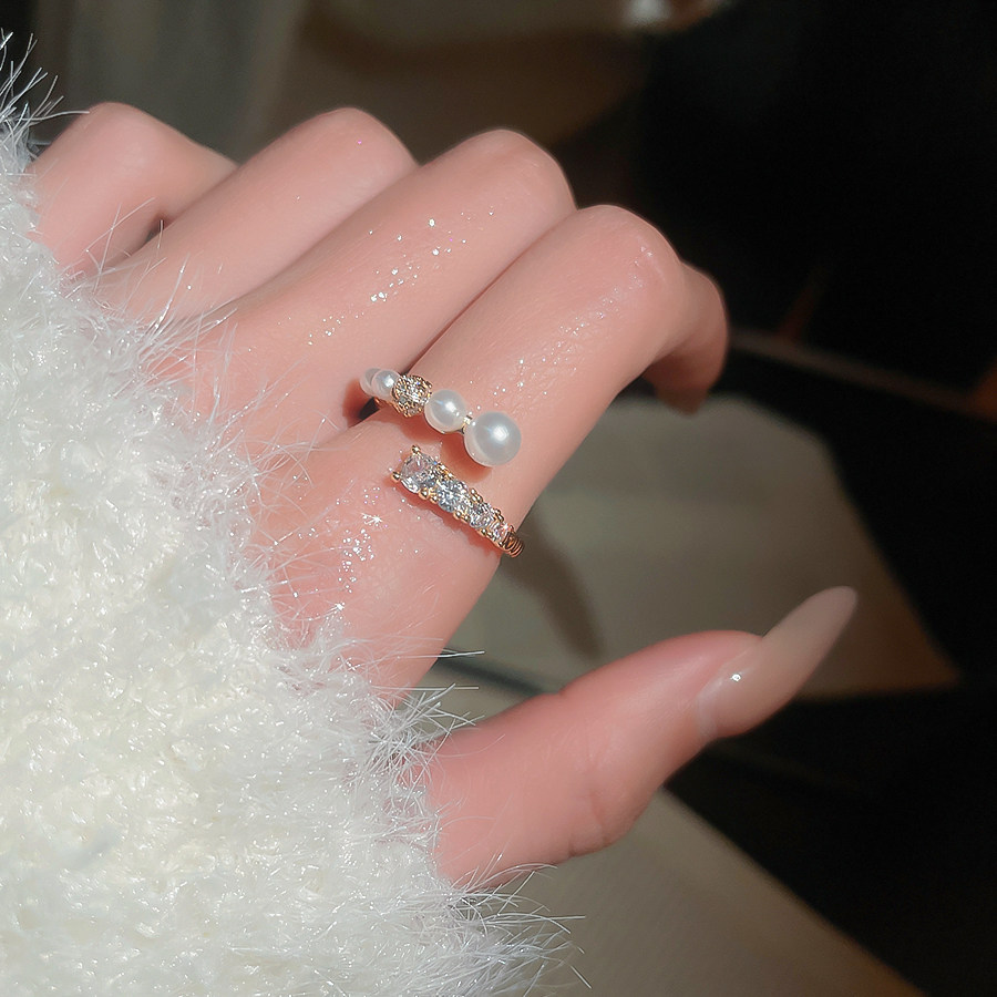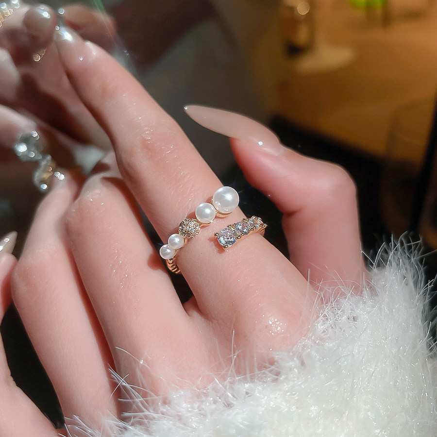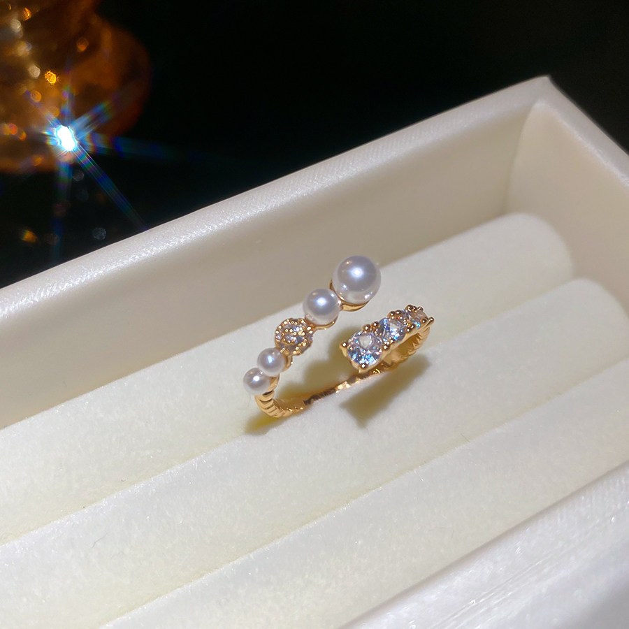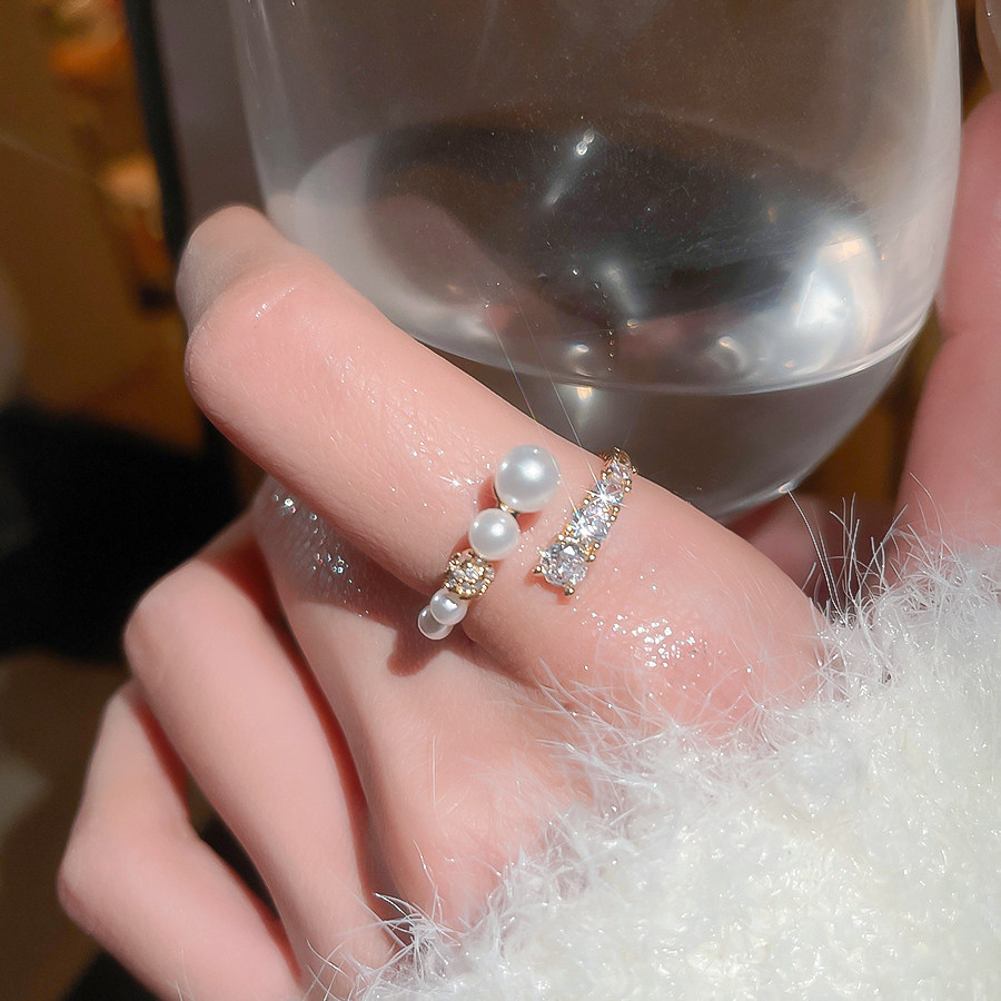 漸層珍珠锆石開口指環|輕奢精緻食指戒