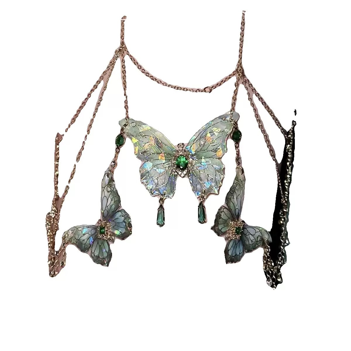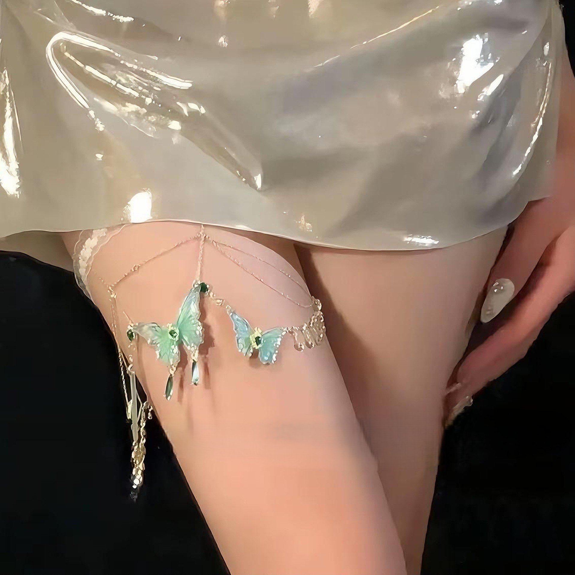 森系綠蝴蝶流蘇腿鏈|超仙蕾絲 Y2K 甜酷身體鏈