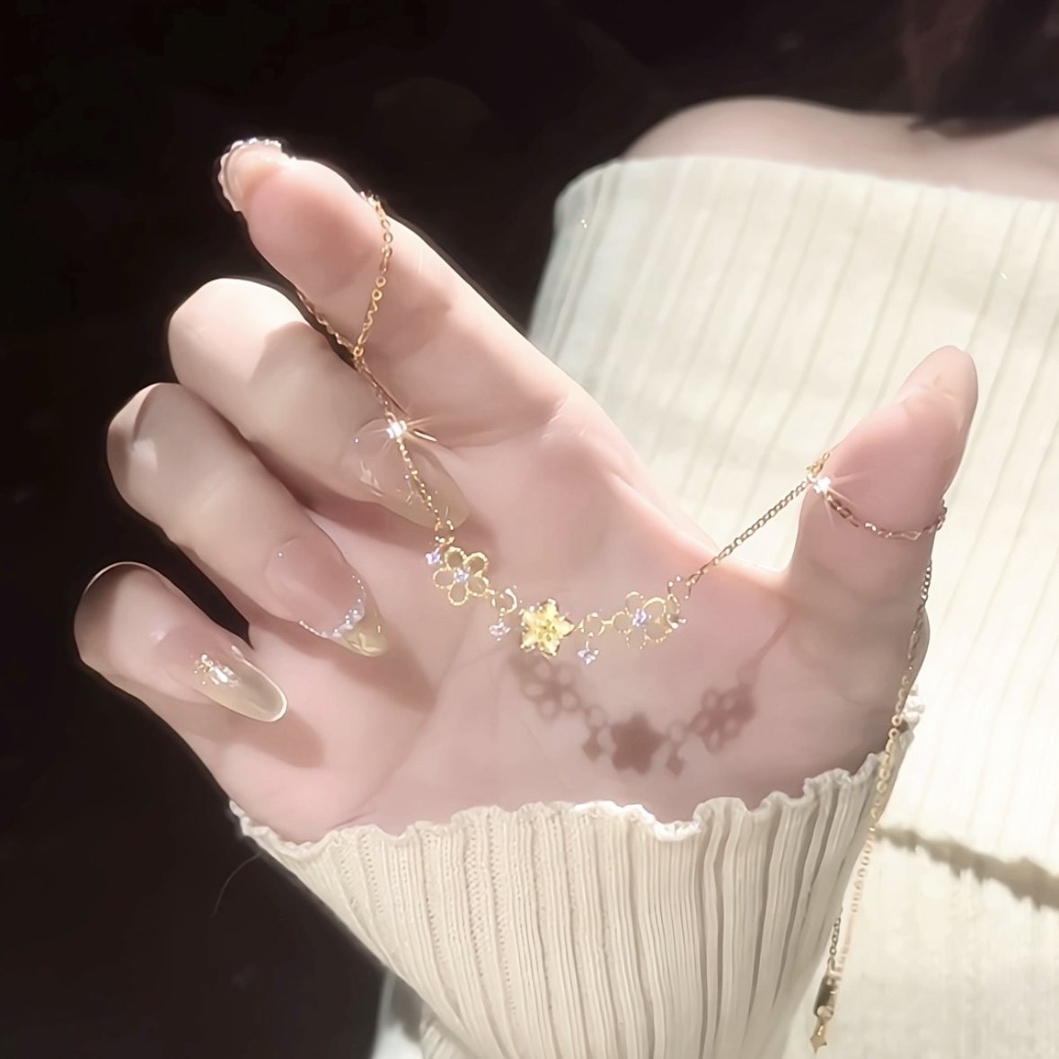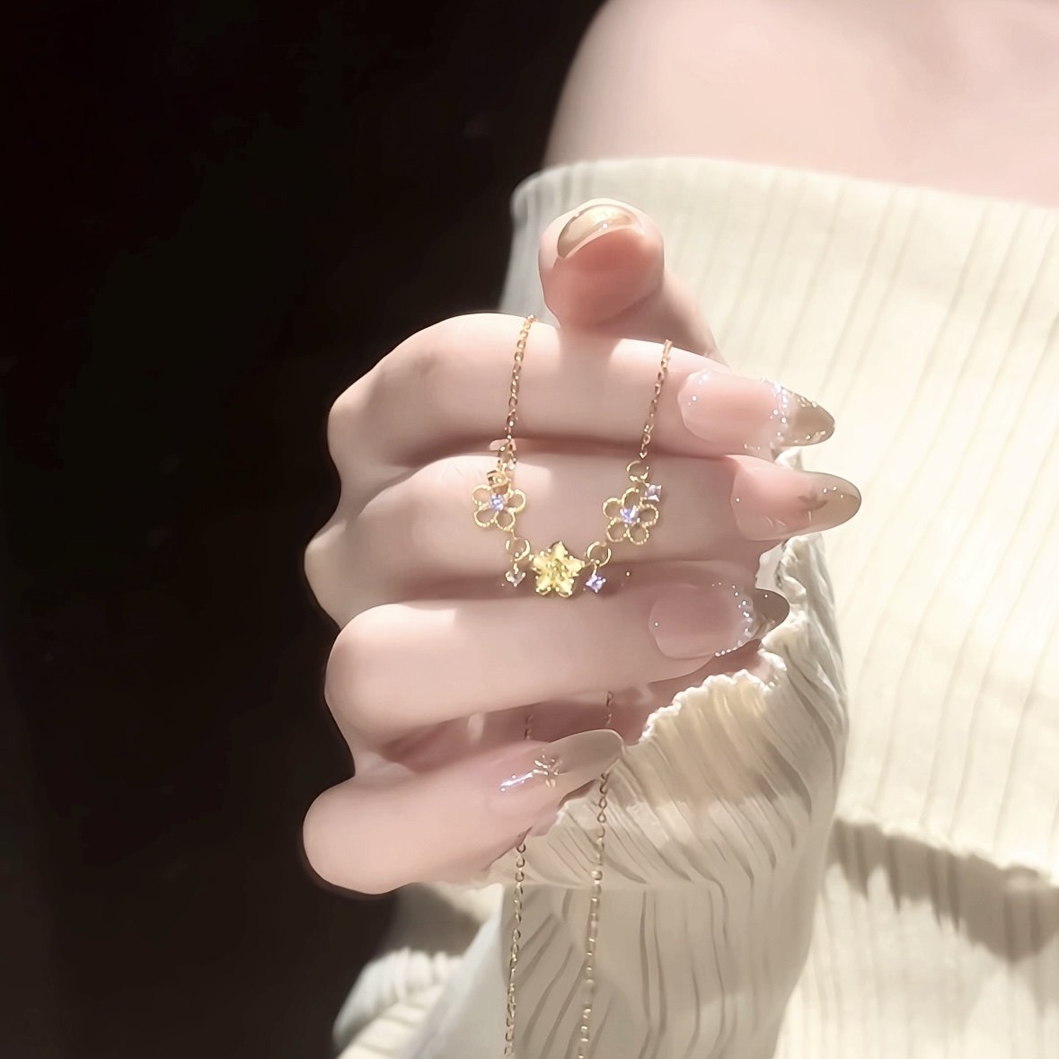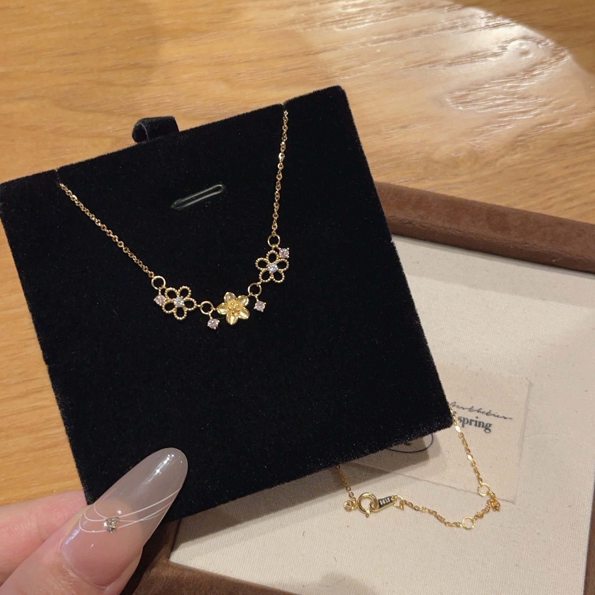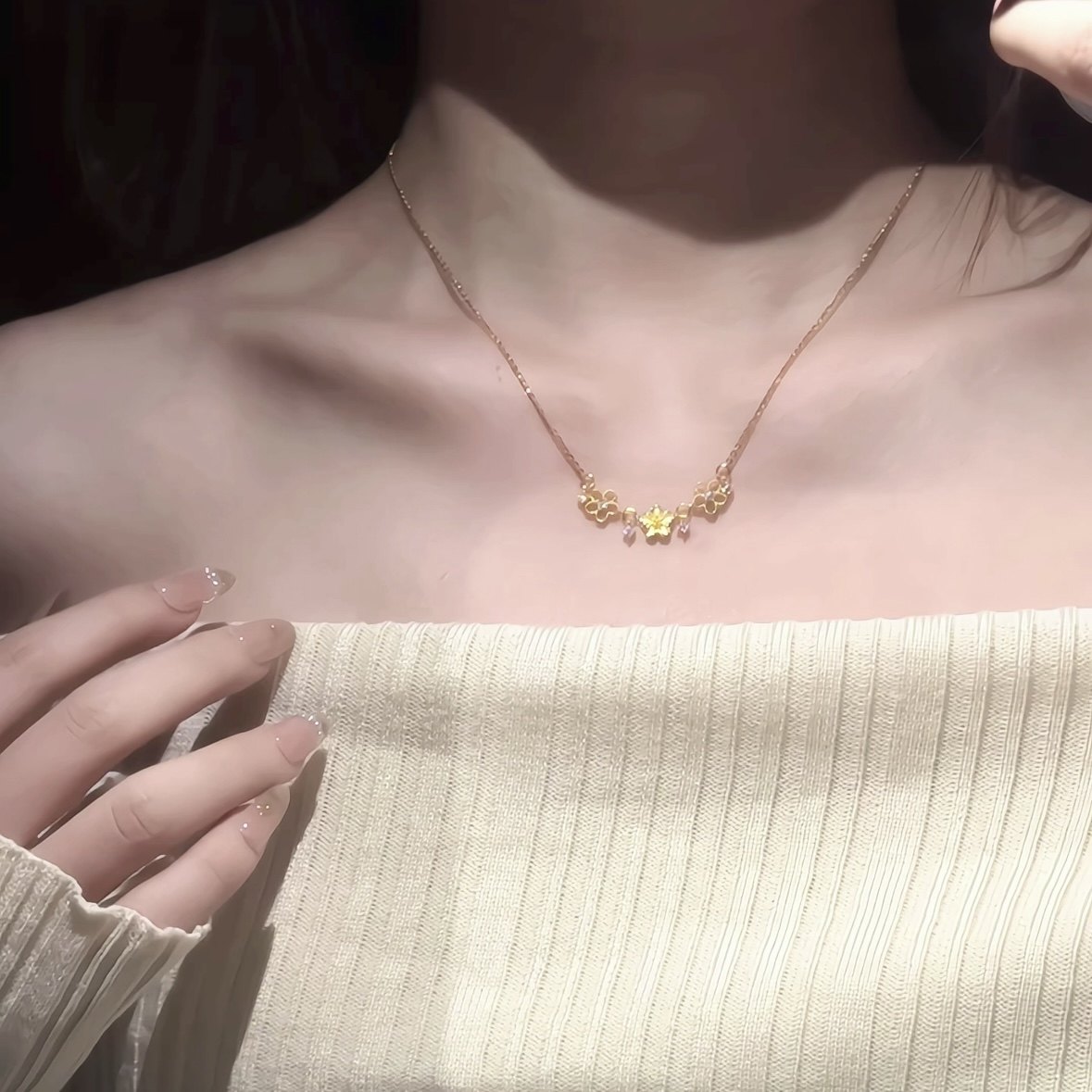金色鏤空櫻花細節項鍊|清雅日常穿搭款