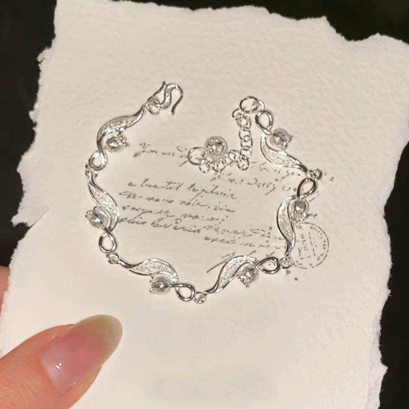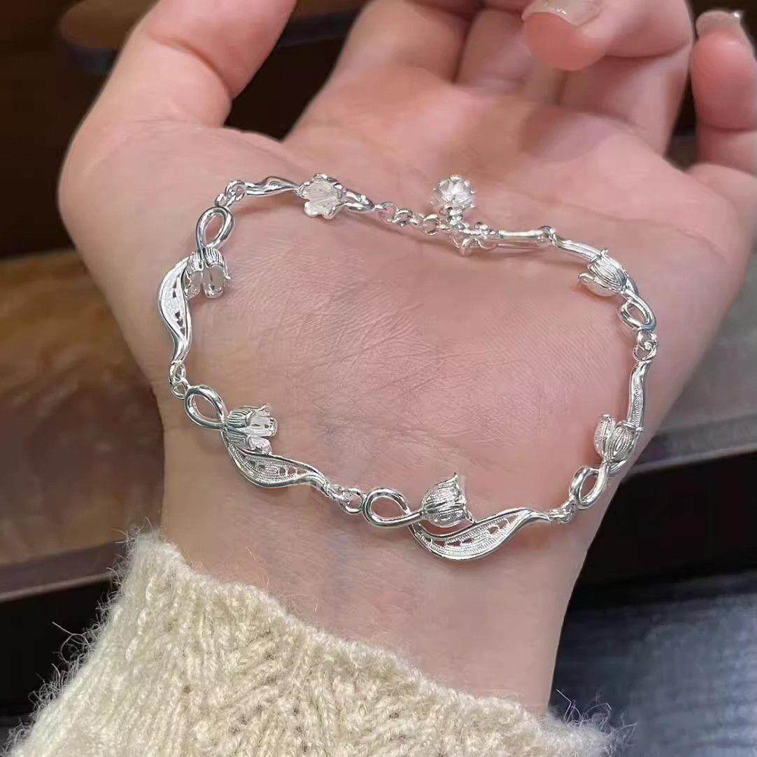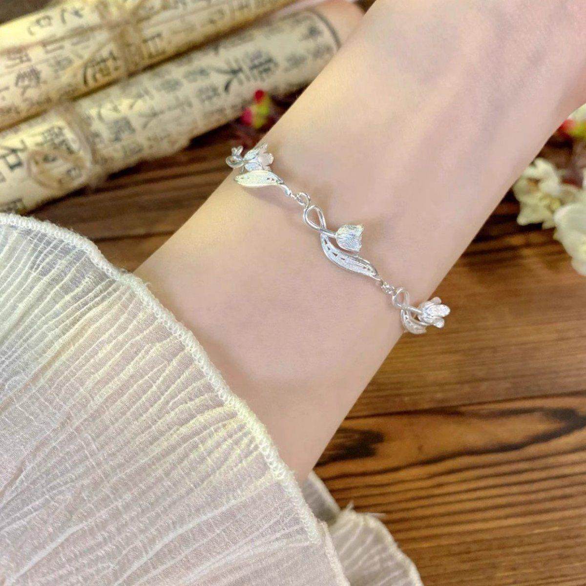 S999 銀蘭花線條手鏈・中式清雅風・日常細鍊款